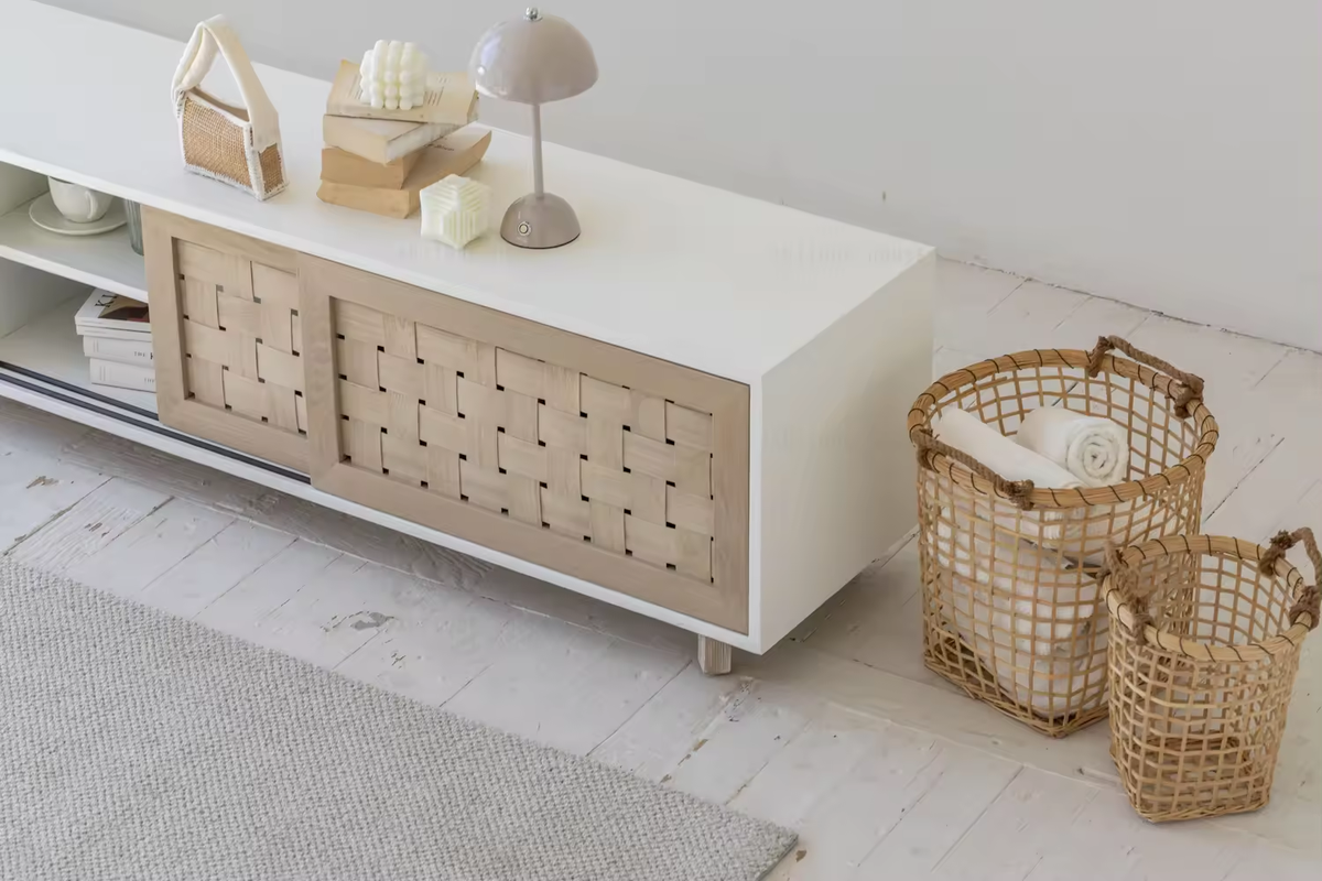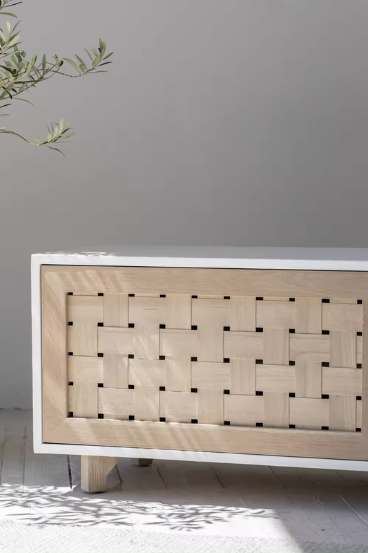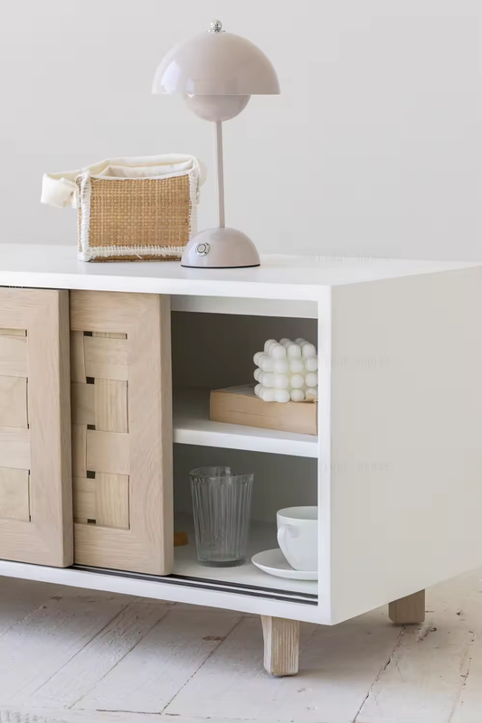 The sideboard will not only provide you with ample storage space, but also add a stylish touch to your living room. It's the perfect way to organize your entertainment system and transform your space into a sleek and modern oasis. With its high-quality materials and expert craftsmanship, this storage cabinet is built to last and enhance your home decor.